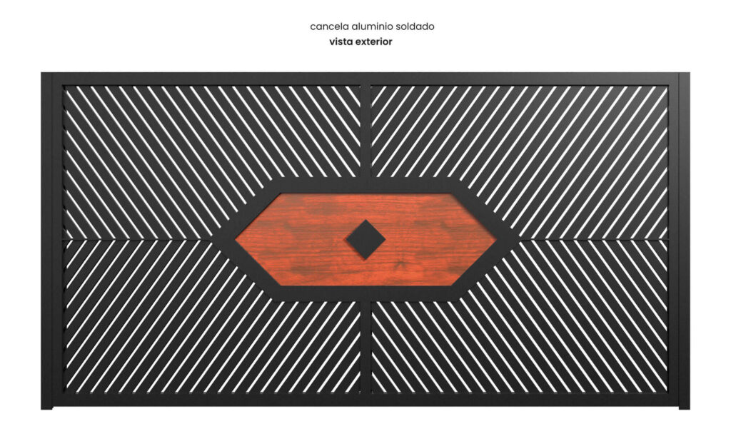 Destaca por sus movimientos entre sus líneas y tubos de aluminio con cortes geométricos. Gracias a su entramado de tubos esta goza de gran robustez. Compuesta por una puerta monobloque de una sola pieza, con perfileria de gran espesor y canalizaciones en el interior para el contínuo desagüe del agua y evitar así, la aparición de alúmina.